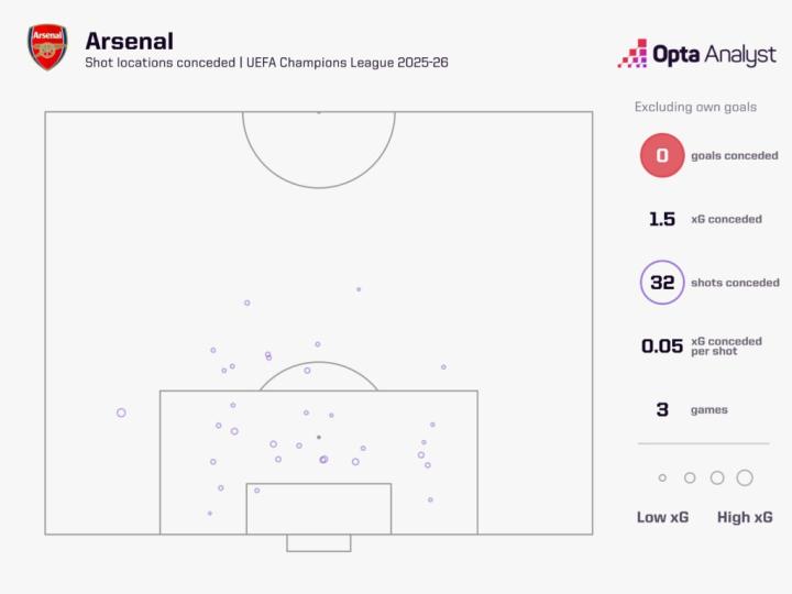 据统计,在欧冠历史上,唯一一支在赛季前四场比赛中保持零封并获胜的英格兰球队是1969-70赛季的利兹联。阿森纳有望成为第二支达成这一成就的英格兰球队。